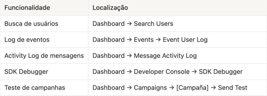 Revisar erros de entrega de in-app, problemas de renderização ou falhas específicas da campanha. -